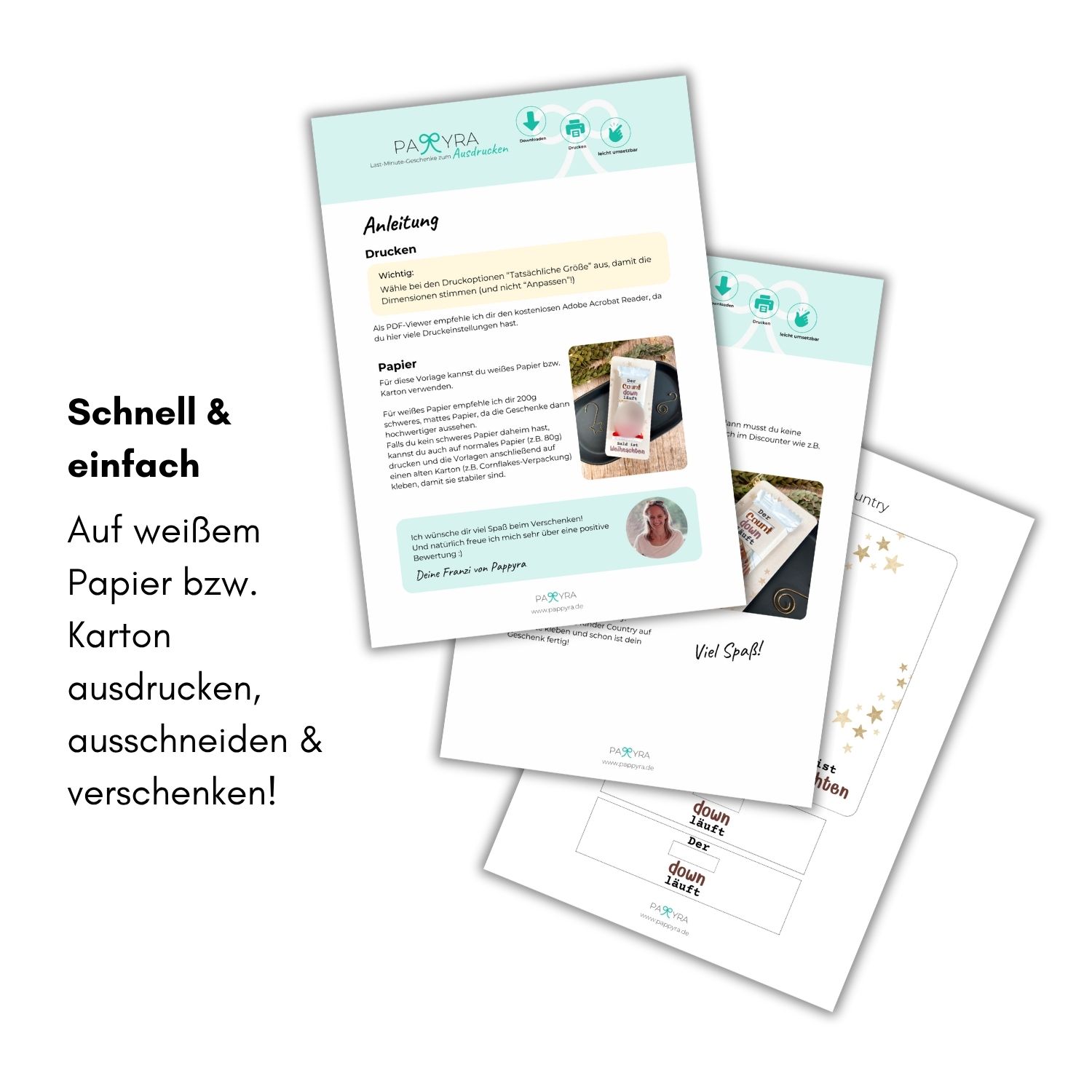 Pappyra steht für kreative Printable Geschenkideen, die mit Herz, Humor und Nachhaltigkeit überzeugen. Kein Versand, kein Plastik, kein Stress – nur dein Drucker, ein bisschen Bastelfreude und ganz viel Weihnachtslaune. Schenken mit Herz – auch wenn’s schnell gehen muss.