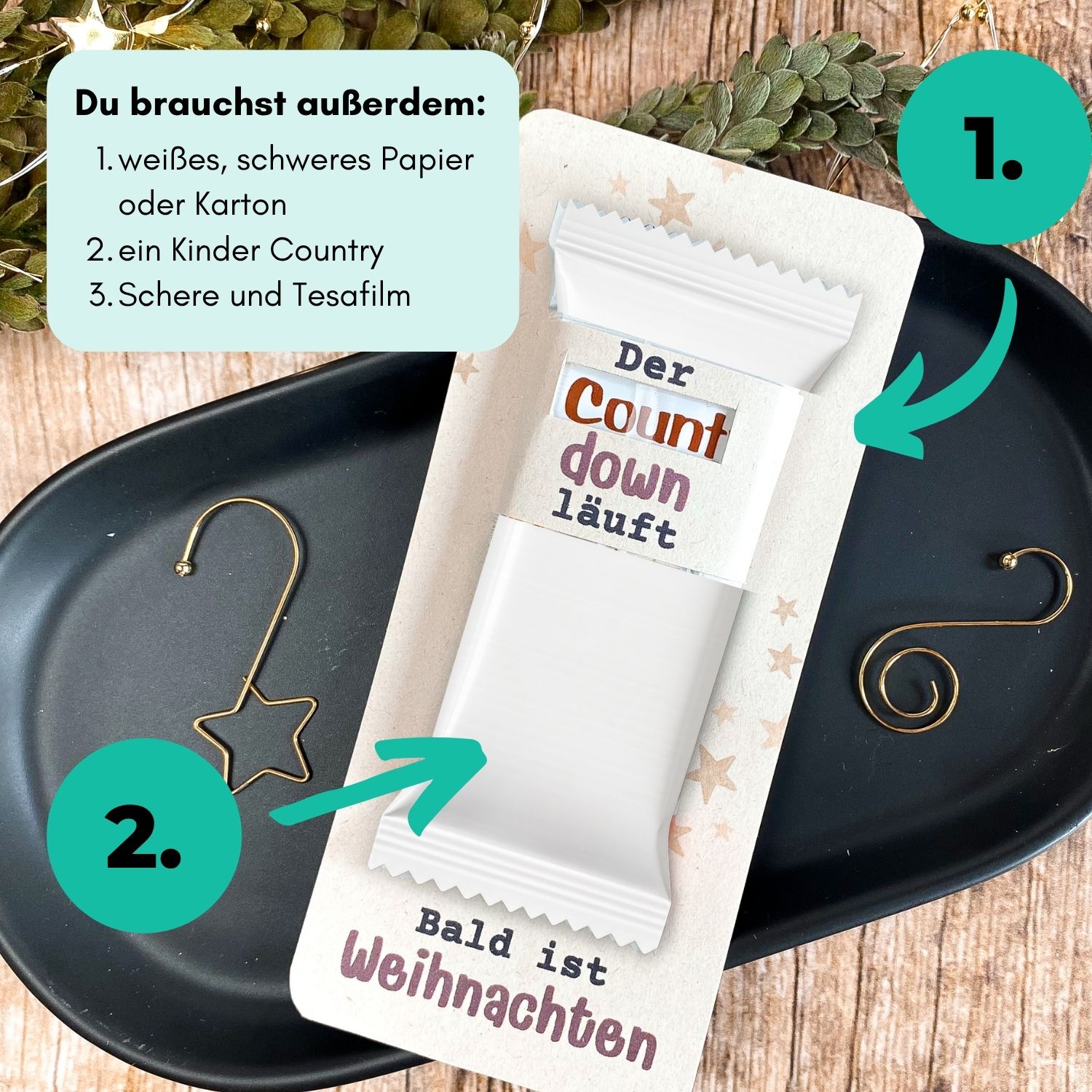 Ein kleiner Schokoriegel, ein großer Lacher: Mit dieser Printable Druckvorlage bastelst du im Handumdrehen ein witziges Mini-Geschenk für die Adventszeit. Auf der Karte steht: „Der Countdown läuft. Bald ist Weihnachten!“ – und das Beste daran: Das Wort Count stammt direkt vom Kinder-Country-Logo, das durch die Druckvorlage hindurchscheint. Eine simple, geniale Idee für alle, die Humor und Kreativität verschenken wollen.