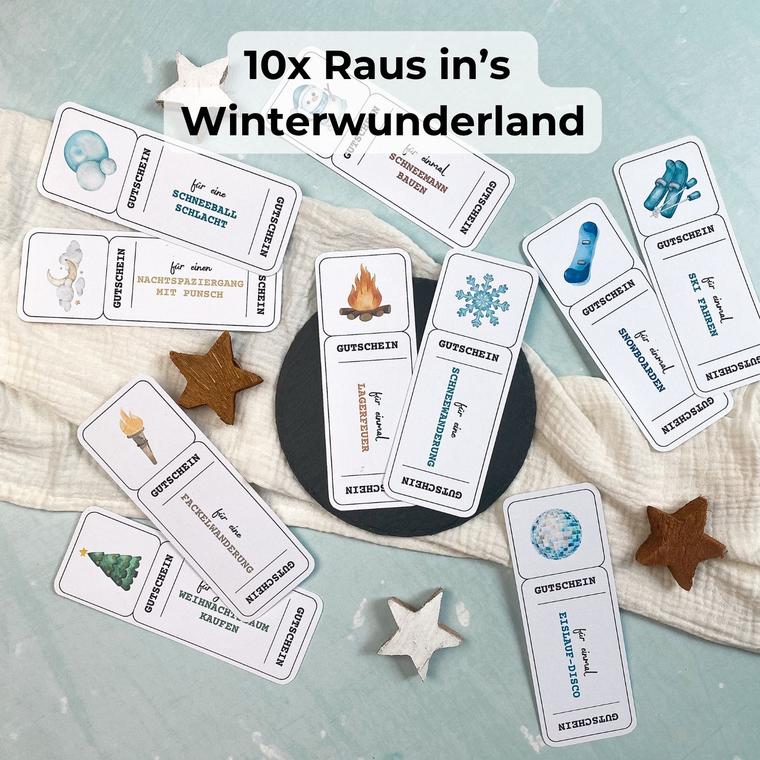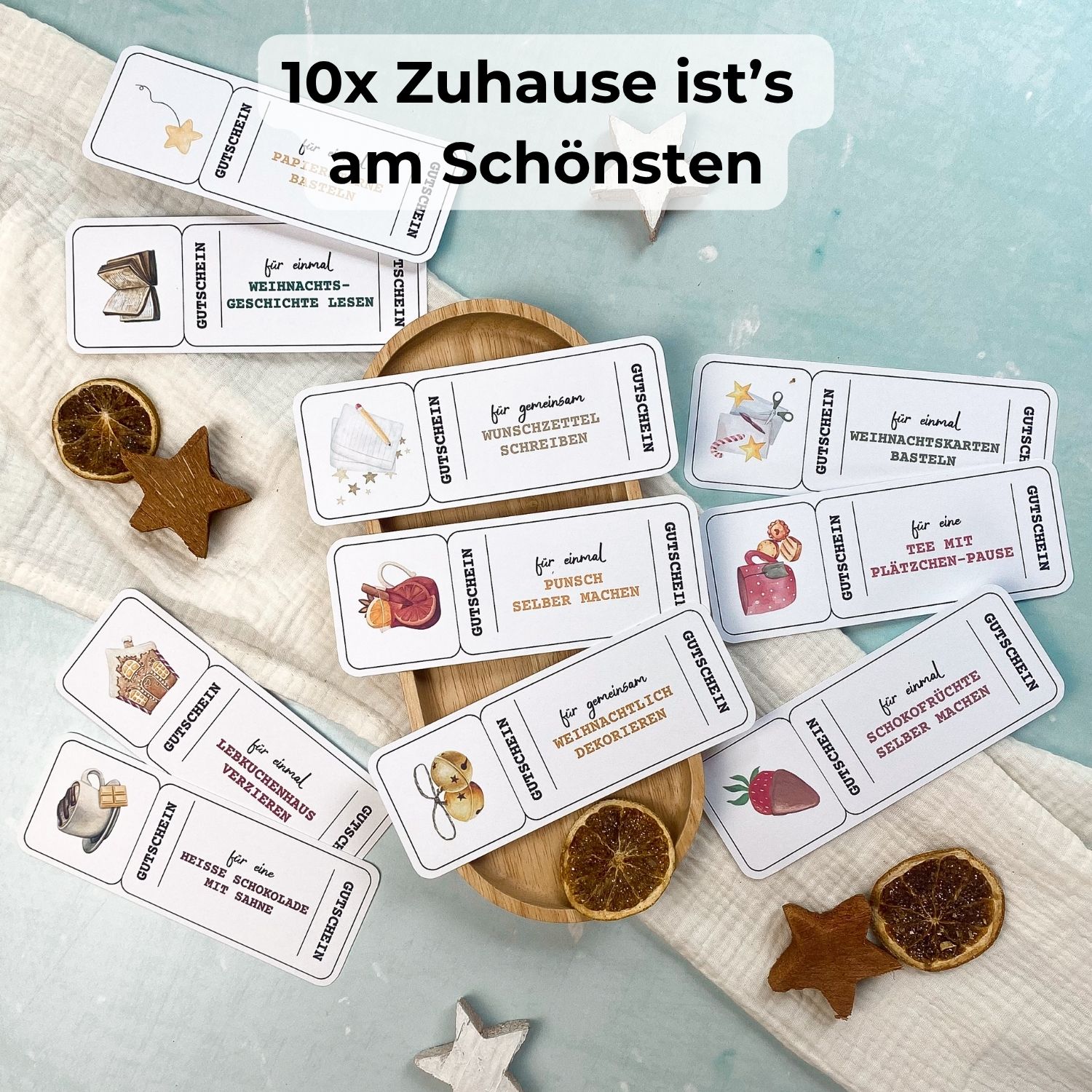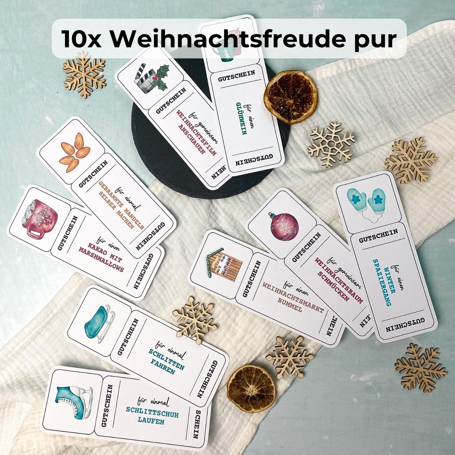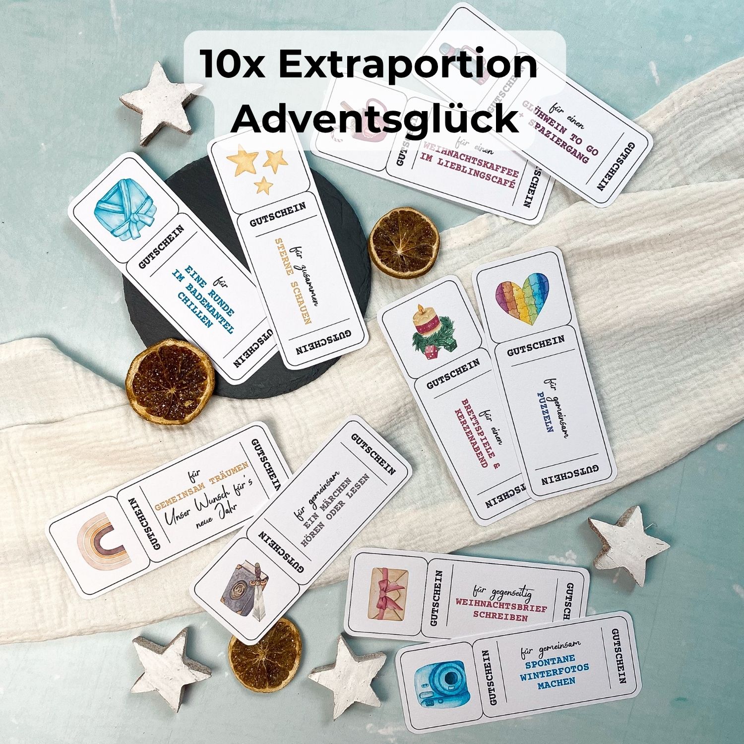 Du kannst deine Adventszeit mit einer Vielzahl liebevoll gestalteter Gutscheinideen füllen – und dir ganz einfach deine 24 Favoriten aussuchen.