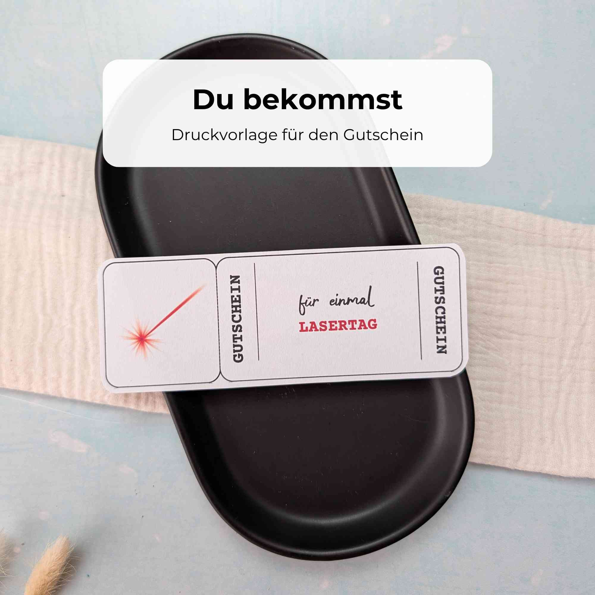 Einfach die Gutschein Lasertag Vorlage ausdrucken, ausschneiden und verschenken – in nur wenigen Minuten hast du ein cooles, persönliches Geschenk in der Hand.