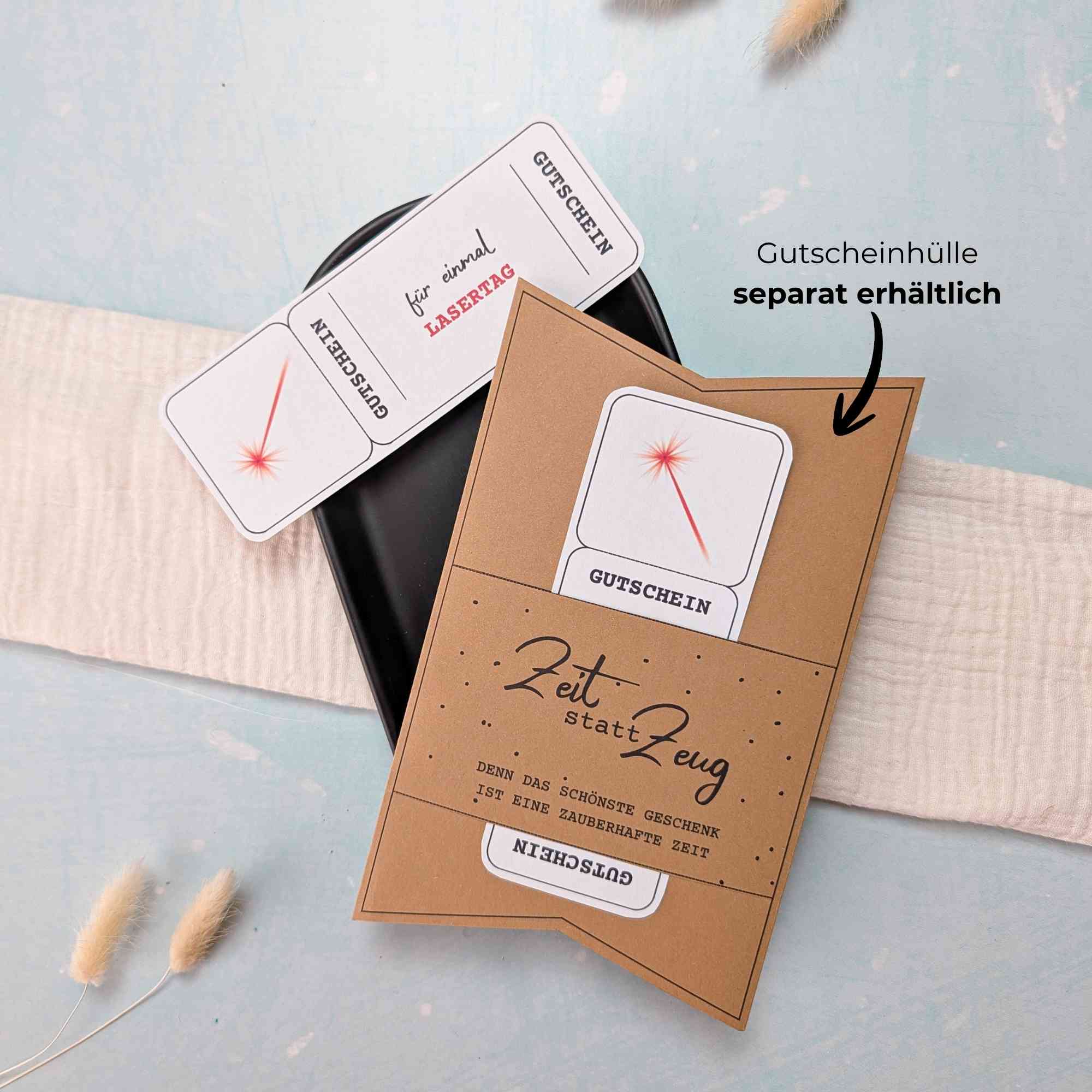 In meinem Shop findest du passende Karten und Hüllen, die genau auf die Gutschein Lasertag Vorlage abgestimmt sind. Jedes Element wurde liebevoll gestaltet und ist Teil eines flexiblen Systems – so kannst du Karten und Gutscheine ganz einfach untereinander kombinieren.