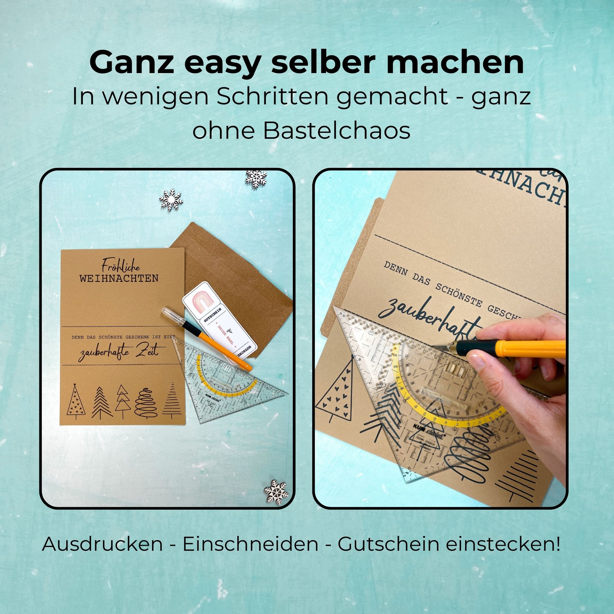 • Schnell & unkompliziert: Einfach downloaden, ausdrucken, Schlitz einritzen und deinen Gutschein einstecken. So bist du in wenigen Minuten fertig – ganz ohne Bastelchaos.