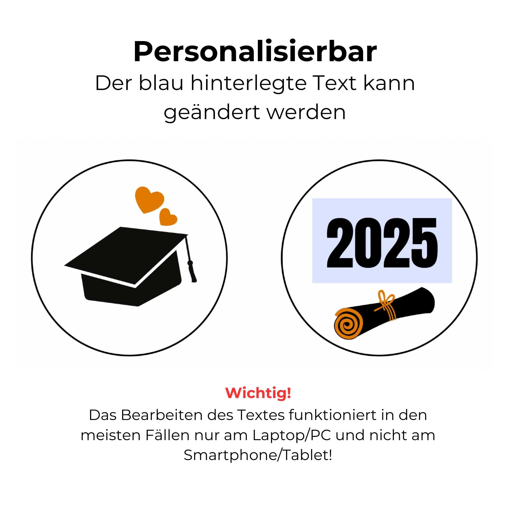 Etikett mit Glückwunsch zur bestandenen Prüfung in verschiedenen Größen