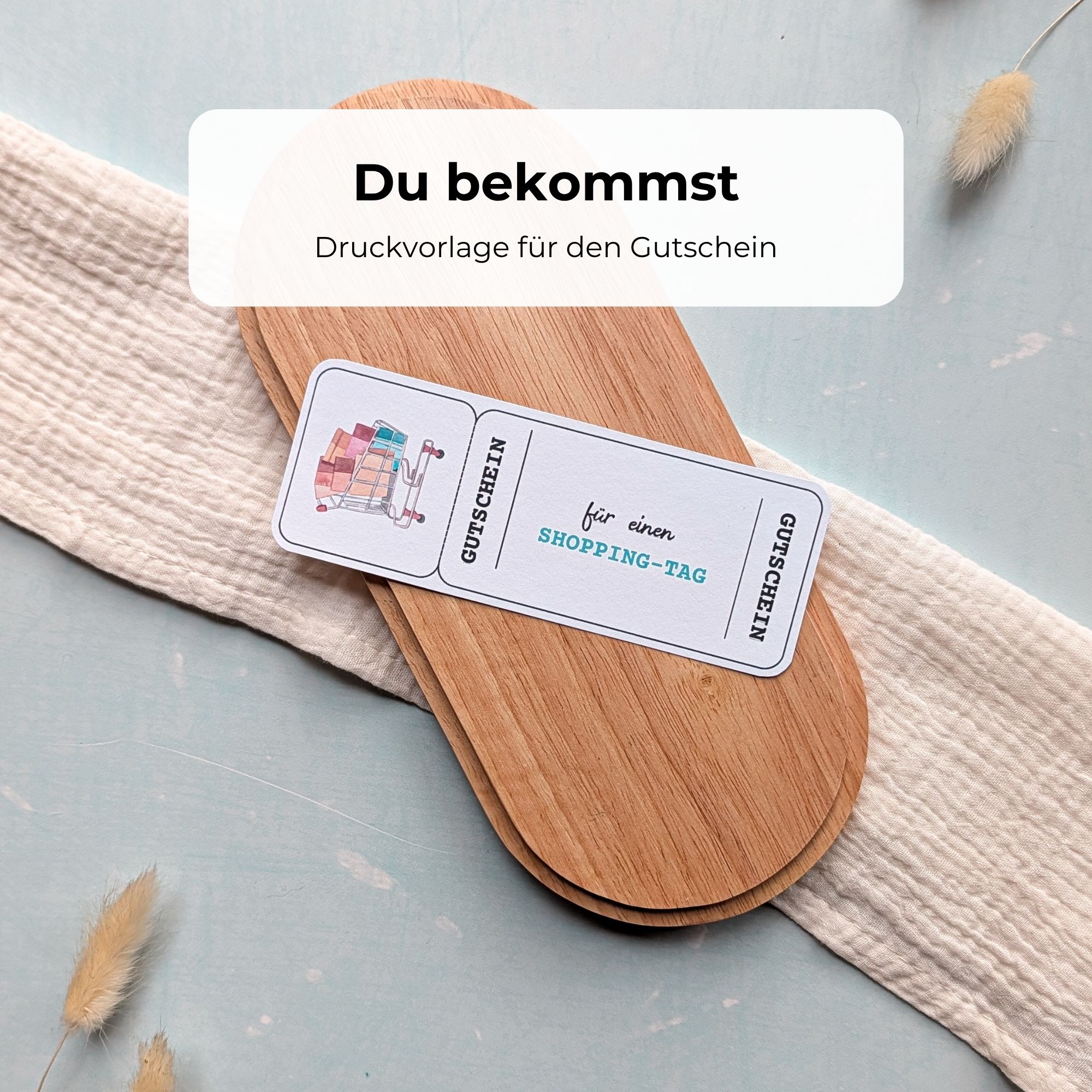 Mit der Druckvorlage für einen Shopping Gutschein hast du im Handumdrehen ein schönes Geschenk parat. Der Gutschein steht direkt nach dem Kauf zum Download bereit – einfach ausdrucken, ausschneiden, verschenken. Keine lange Vorbereitung, kein Verpackungschaos – aber ganz viel Herz.