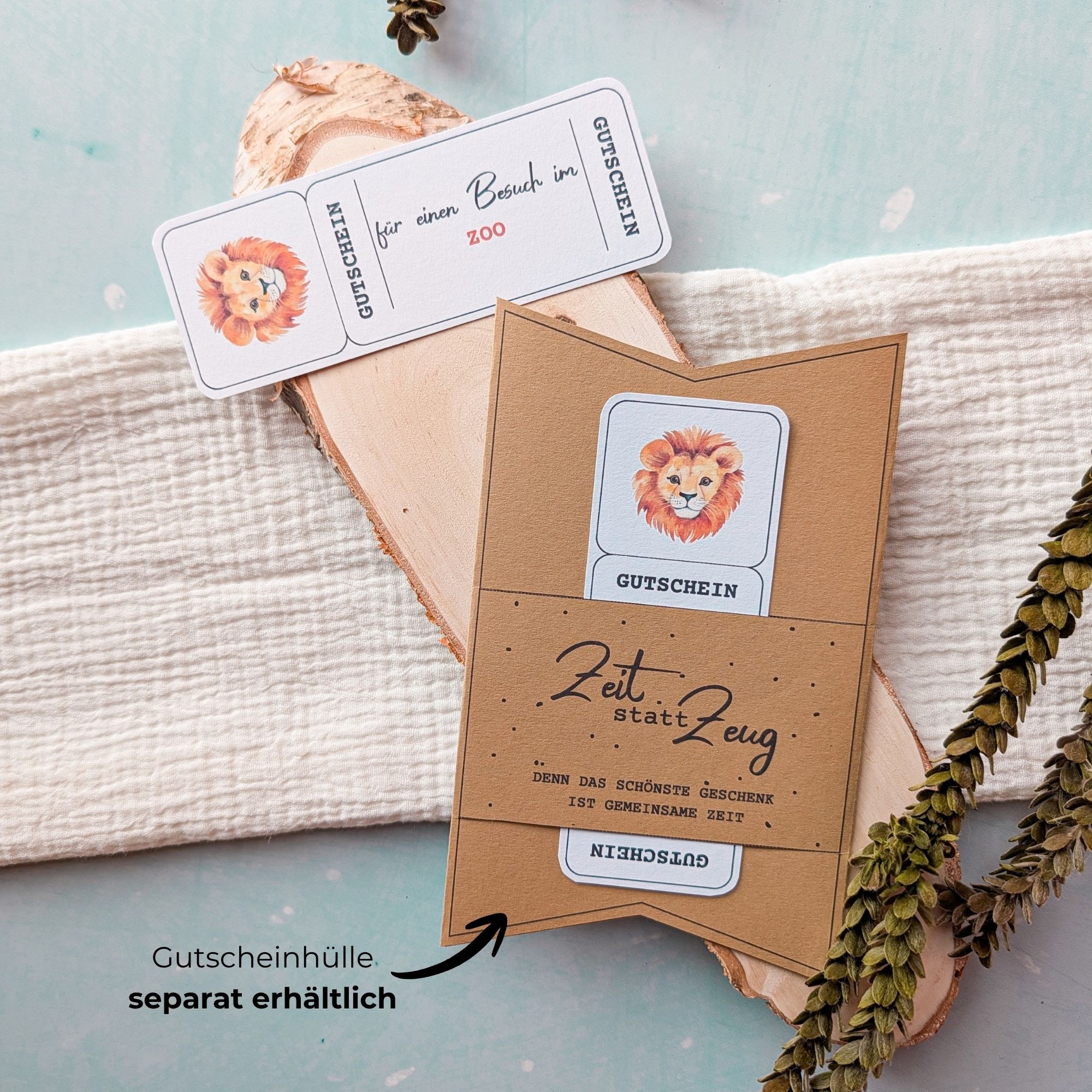 In meinem Shop findest du passende Karten und Hüllen, die perfekt auf den Zoo Gutschein abgestimmt sind. Jede Karte ist Teil eines durchdachten Designkonzepts, bei dem alles zusammenpasst: alle Gutscheine und Karten lassen sich flexibel untereinander kombinieren und sorgen für ein stimmiges Gesamtbild.
