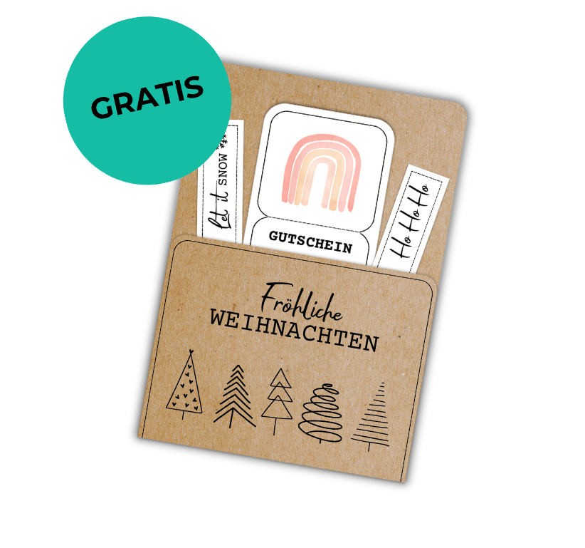 Verwende die Gutscheine aus dem Gutschein-Adventskalender gleich für deine Weihnachtsgeschenke wieder und kombiniere sie mit der Weihnachtskarte!